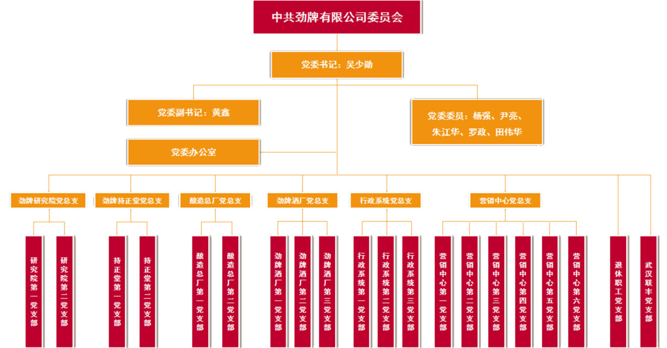 在各級黨組織的高度重視和親切的關(guān)懷下,勁牌有限公司的基層黨組織隨著企業(yè)的穩(wěn)健發(fā)展而不斷壯大,1996年升格為黨委,2013年成立紀(jì)委;同時(shí)建立健全了工會、共青團(tuán)、婦聯(lián)組織,配備了專兼職人員,形成了黨建工作齊抓共管的工作格局。目前,公司黨委下轄6個(gè)黨總支,共設(shè)20個(gè)黨支部。