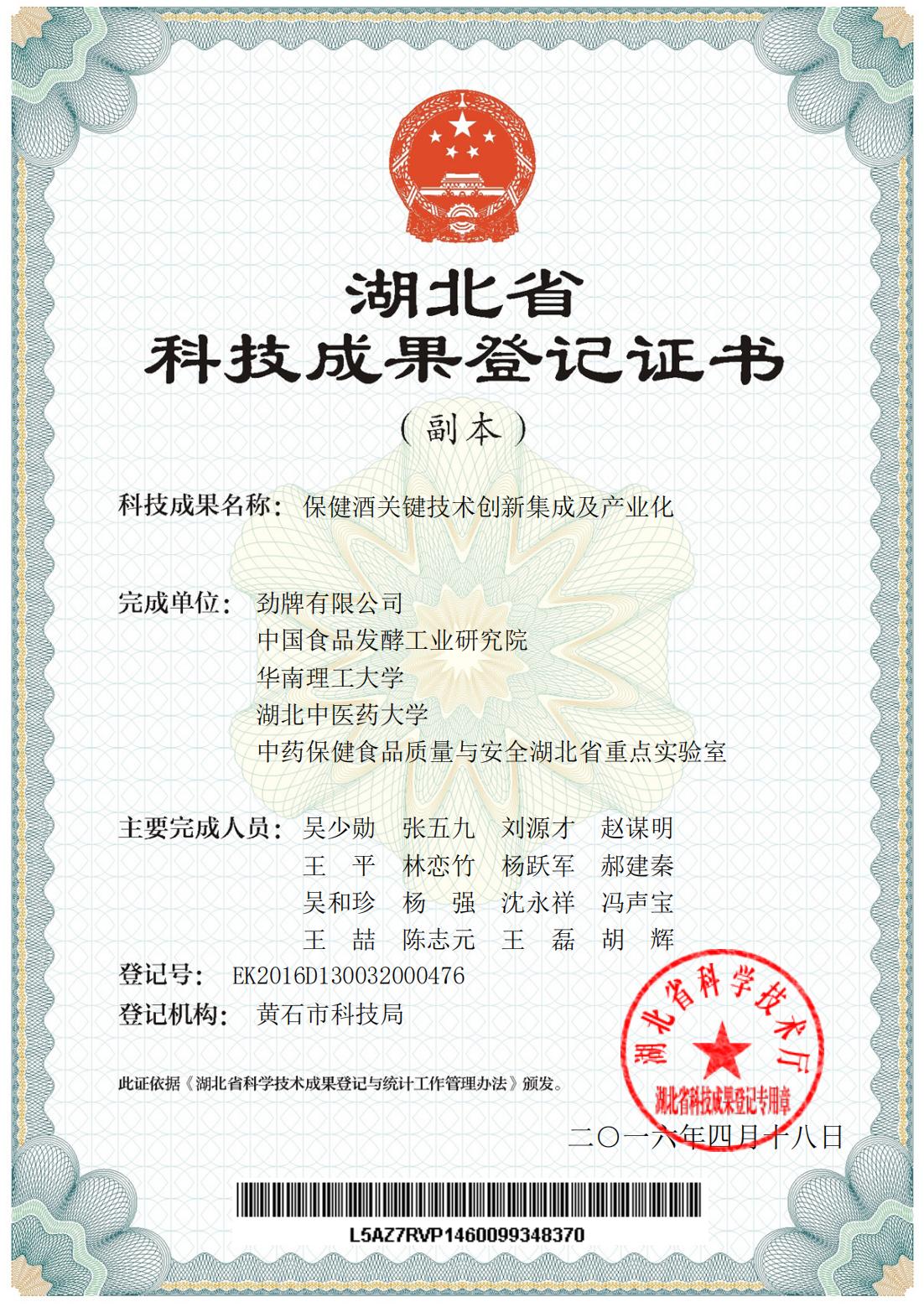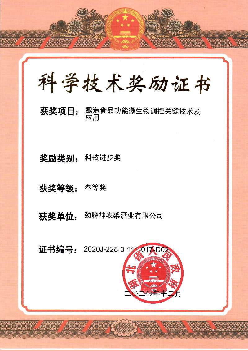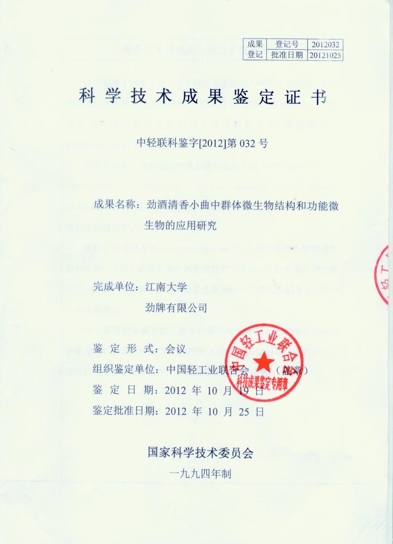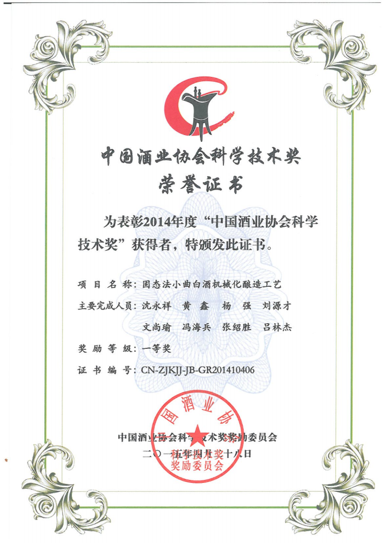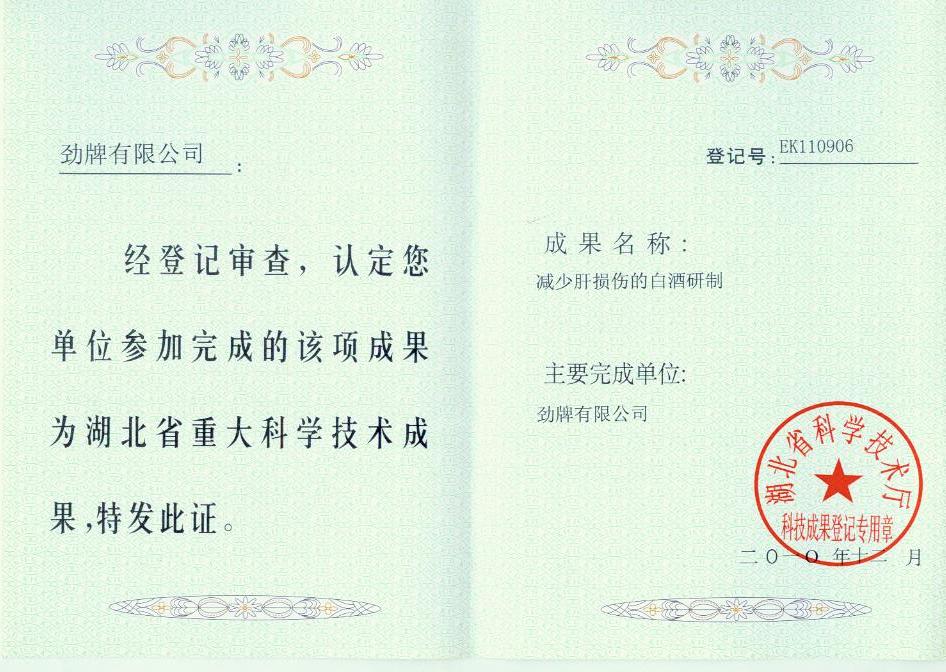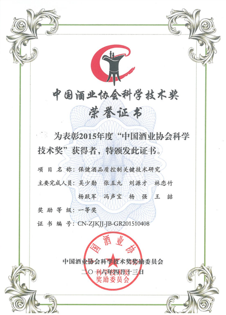 目前勁牌有限公司共獲得國(guó)家級(jí)、省級(jí)、行業(yè)級(jí)科技獎(jiǎng)勵(lì)27項(xiàng)。其中國(guó)家級(jí)科技獎(jiǎng)1項(xiàng),省部級(jí)科技獎(jiǎng)11項(xiàng),行業(yè)級(jí)科技獎(jiǎng)15項(xiàng)。