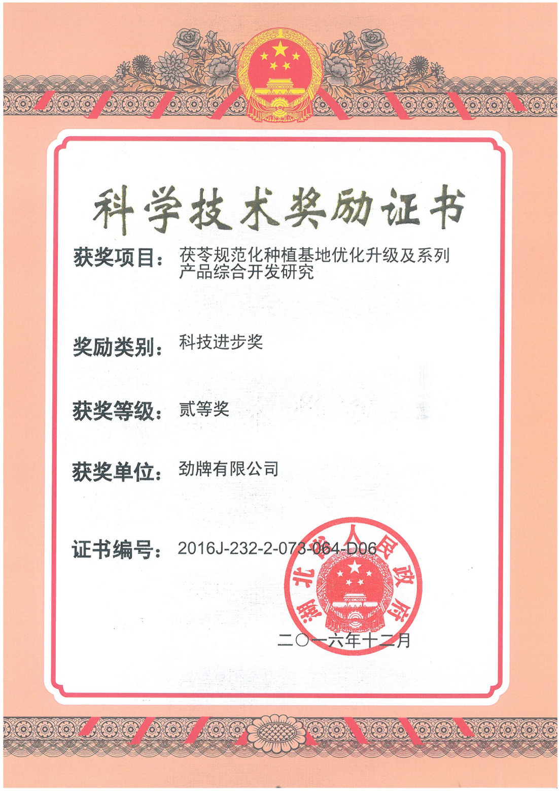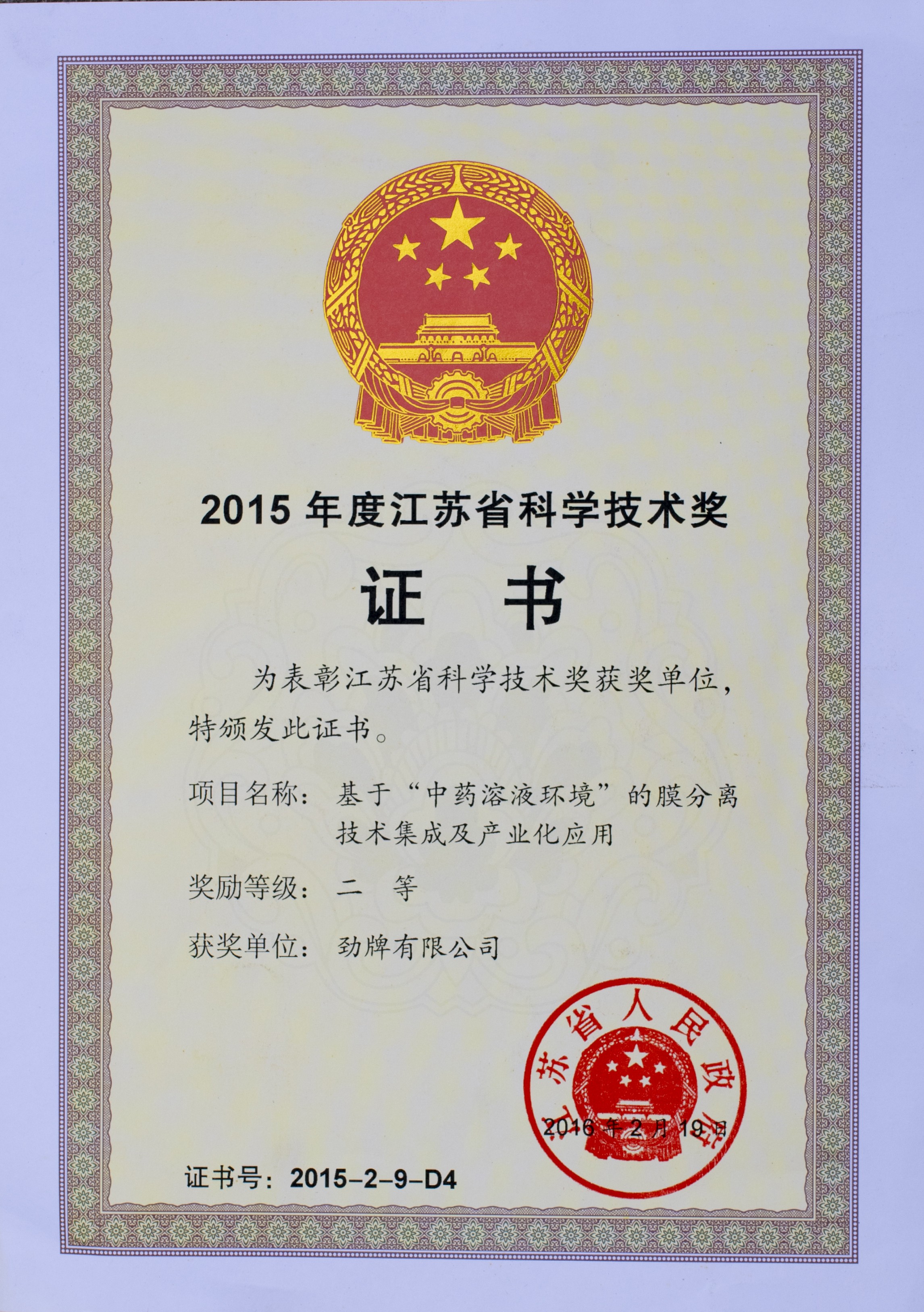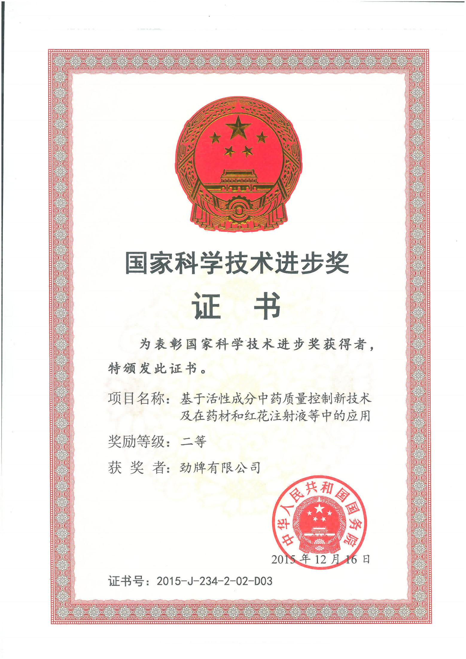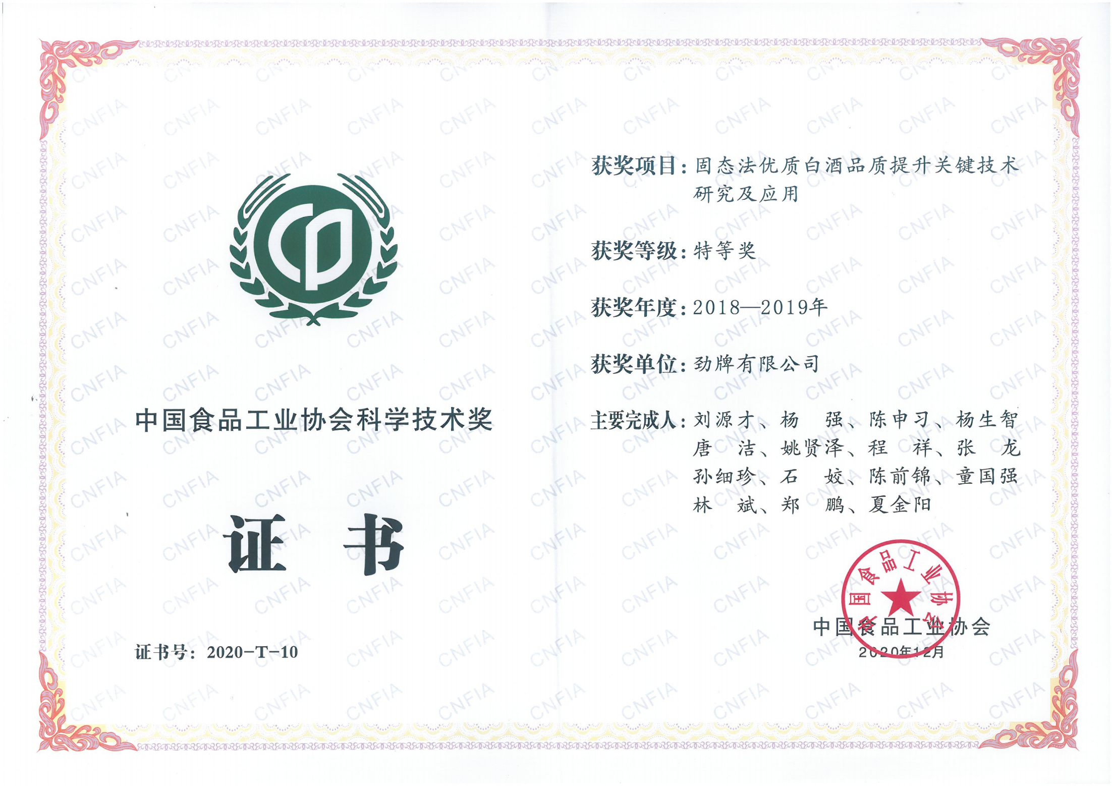 目前勁牌有限公司共獲得國(guó)家級(jí)、省級(jí)、行業(yè)級(jí)科技獎(jiǎng)勵(lì)27項(xiàng)。其中國(guó)家級(jí)科技獎(jiǎng)1項(xiàng),省部級(jí)科技獎(jiǎng)11項(xiàng),行業(yè)級(jí)科技獎(jiǎng)15項(xiàng)。