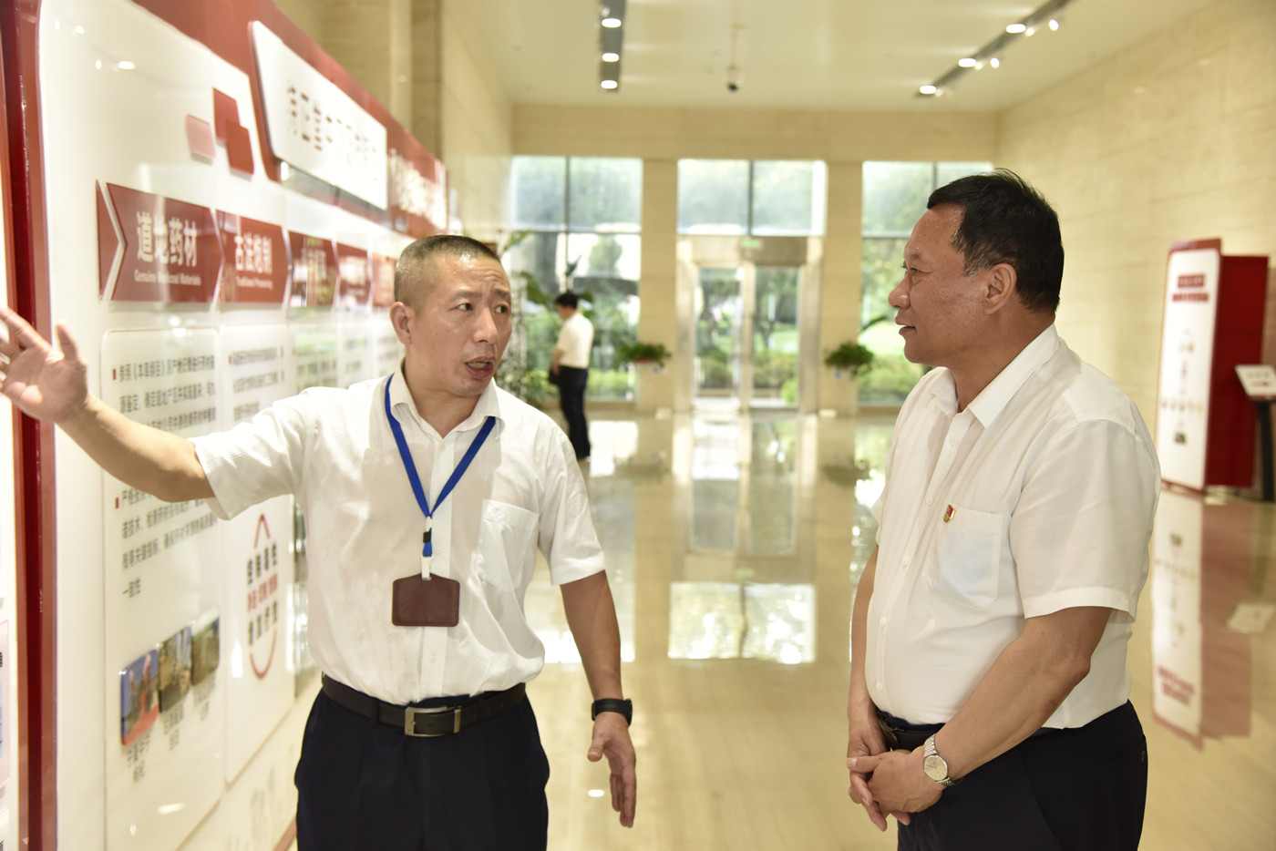 巴音克西一行實(shí)地考察了共享智慧藥房、勁牌研究院、提取車間,深入了解了勁牌公司的企業(yè)文化、生產(chǎn)工藝、技術(shù)創(chuàng)新、產(chǎn)業(yè)布局等內(nèi)容,巴音克西一邊仔細(xì)聆聽(tīng)副總裁李清安的講解介紹,一邊就中藥配方顆粒的臨床使用、企業(yè)發(fā)展規(guī)劃等問(wèn)題進(jìn)行親切交流。